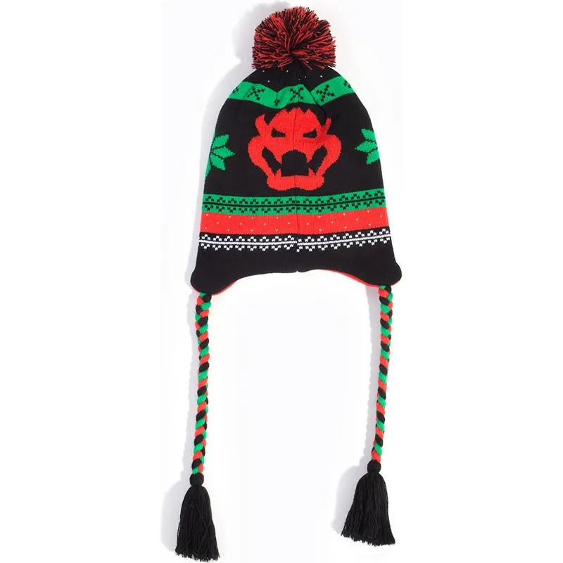 Gorro in Rot, Schwarz und Grün mit Bowser Super Mario Bros. Sherpa von Difuzed