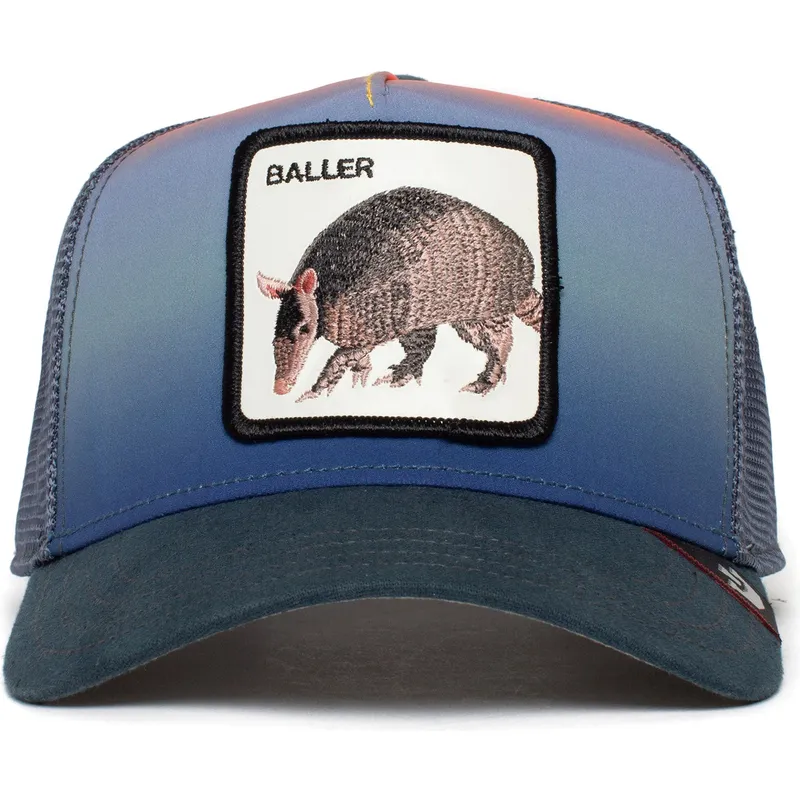 Die marineblaue Trucker-Kappe von Goorin Bros. Armadillo Baller Balladillo The Farm ist ein Muss für jeden Kopfbedeckungs- und Streetwear-Liebhaber. Mit ihrem zeitlosen Design und ihrer unübertroffenen Qualität ist diese Mütze eine kluge Investition für diejenigen, die ein hochwertiges, langlebiges Kleidungsstück suchen. Mit ihrem einzigartigen Stil und ihrer makellosen Verarbeitung lässt diese Kappe niemanden gleichgültig.