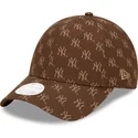 New Era 9FORTY New York Yankees MLB Damen Verstellbare Braune Kappe mit Gebogenem Schirm Monogramm