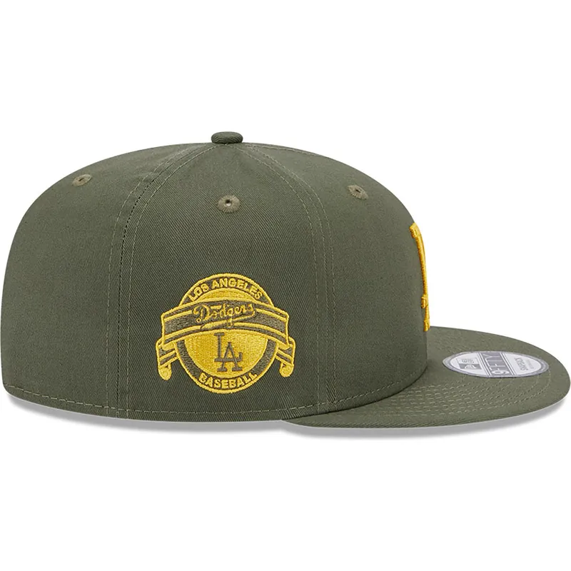 Grüne Snapback-Kappe mit flachem Schirm und gelbem Logo, 9FIFTY Side Patch der Los Angeles Dodgers MLB von New Era