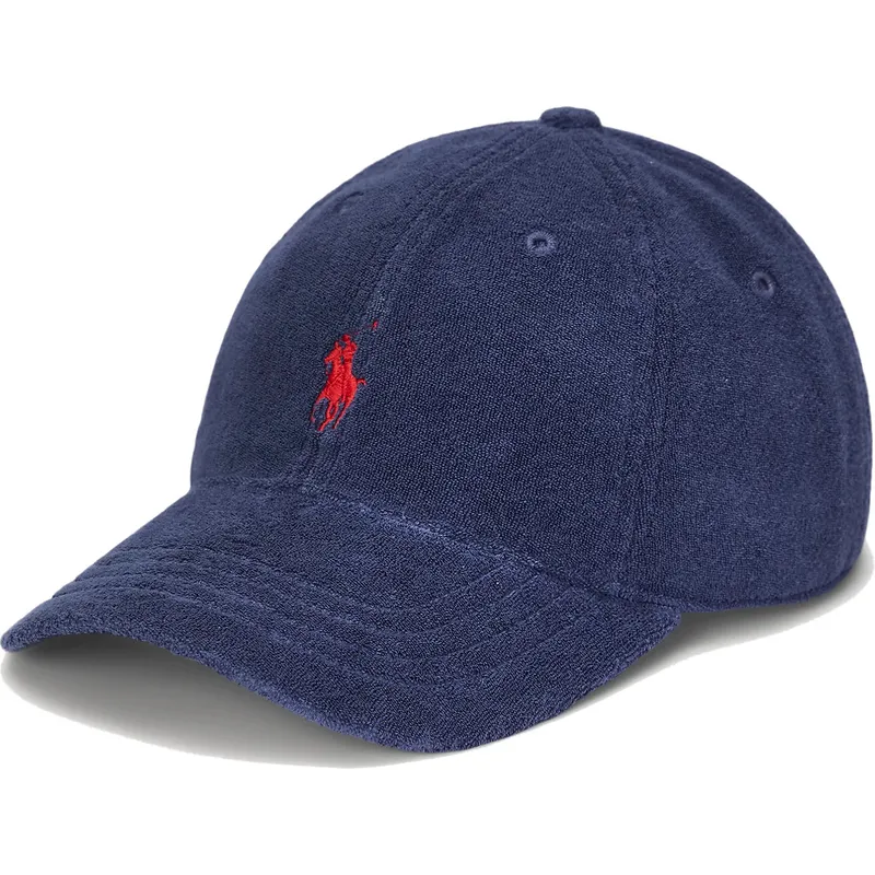 Marineblaue, verstellbare Kappe mit gebogenem Schirm und rotem Logo Cotton Terry Classic Sport von Polo Ralph Lauren