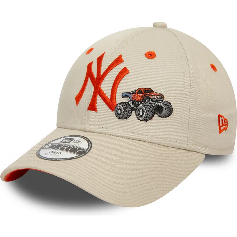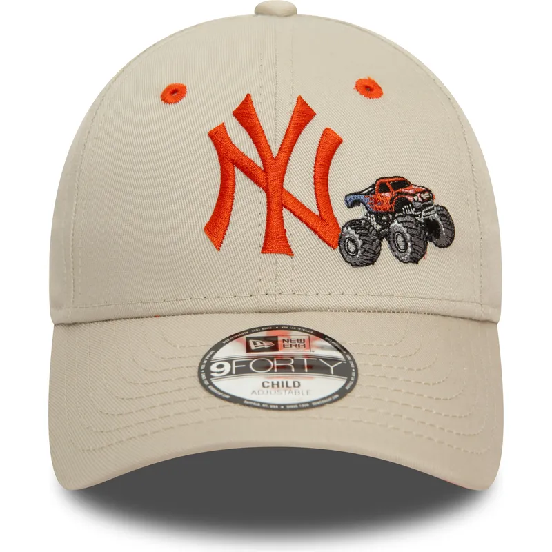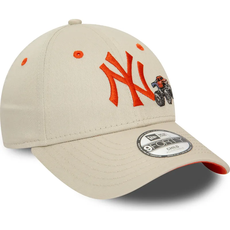 New Era New York Yankees MLB 9FORTY Graphic Monster Truck beige verstellbare Kinder-Cap mit gebogenem Schirm und orangefarbenem