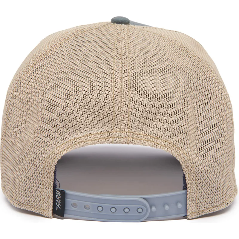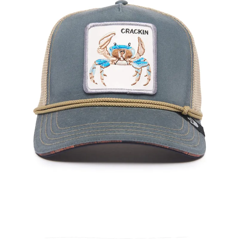 Die aus hochwertigen Materialien gefertigte grau-beige Wuz Crackin Nautical Nonsense The Farm Trucker-Kappe in Krabbenform von Goorin Bros. zeichnet sich durch ihre Haltbarkeit und Widerstandsfähigkeit aus und sorgt dafür, dass sie im Laufe der Zeit in optimalem Zustand bleibt. Darüber hinaus verleiht ihm sein Design in Grau- und Beigetönen mit einer aufgestickten Krabbe auf der Vorderseite eine originelle und auffällige Note, die zweifellos überall Aufmerksamkeit erregen wird.