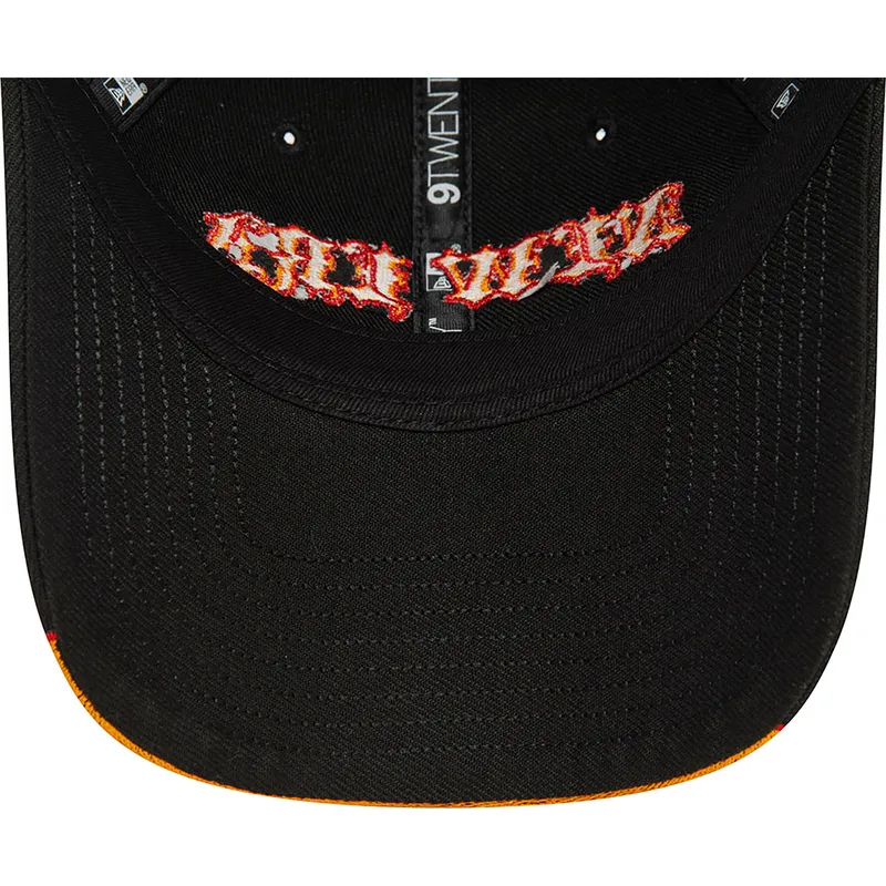 Die verstellbare gebogene Kappe 9TWENTY Race Flame von New Era in Schwarz und Orange ist ein unverzichtbares Accessoire für jeden Liebhaber von urbaner Mode und Streetstyle. Mit ihrem Unisex-Design und dem verstellbaren Riemenverschluss passt sich diese Kappe perfekt an den Kopf eines jeden Erwachsenen an, der einen lässigen und modernen Look zeigen möchte.