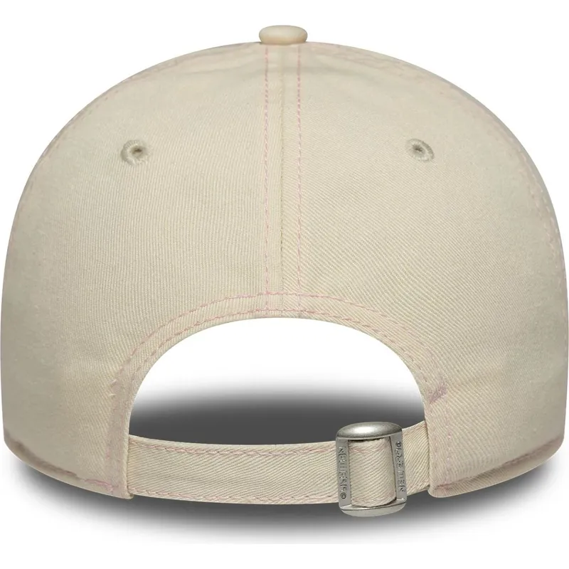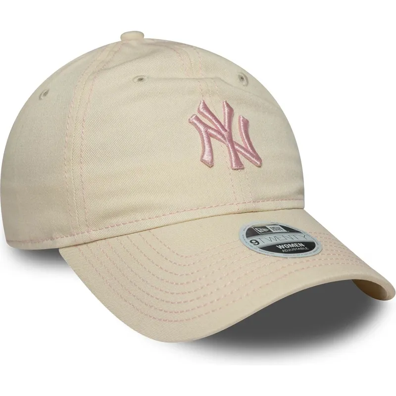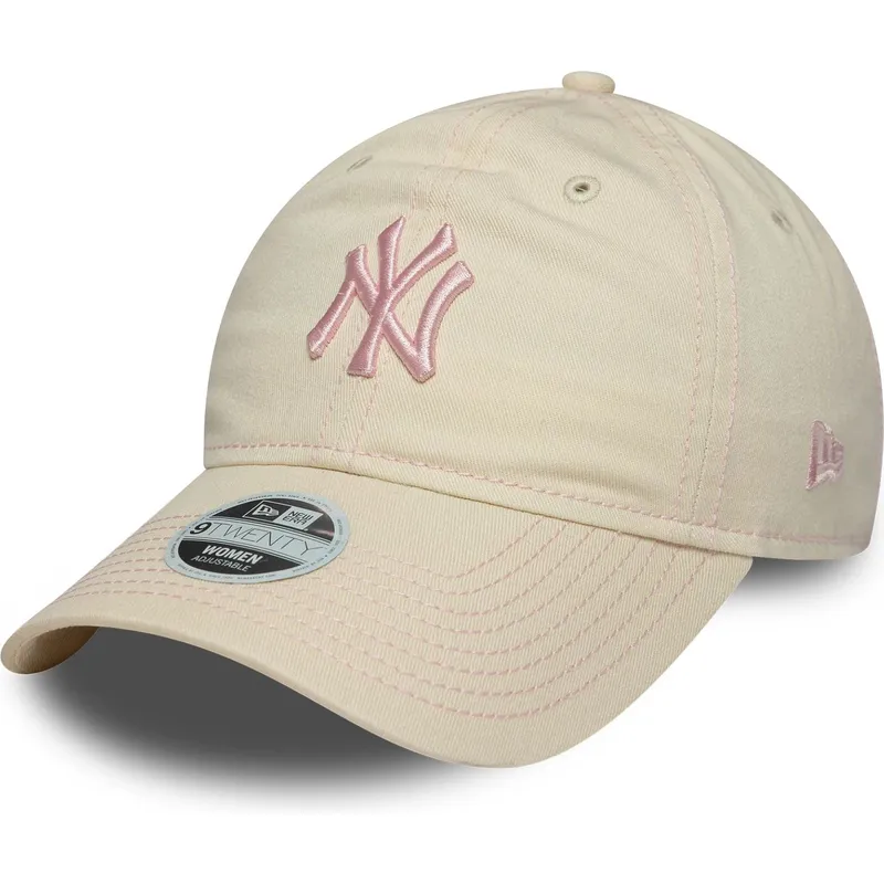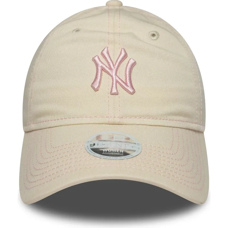 New Era MLB New York Yankees 9TWENTY Contrast Stitch beige verstellbare Damenkappe mit rosa Logo