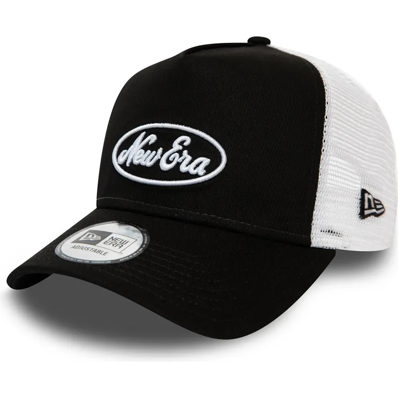 Schwarz-weiße Trucker-Kappe Oval Script A Frame von New Era