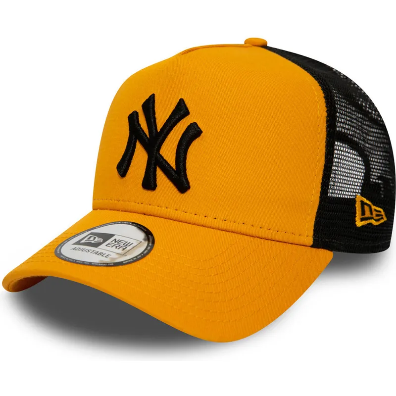 New Era MLB New York Yankees League Essential A Frame Trucker Cap Orange with Black Logo