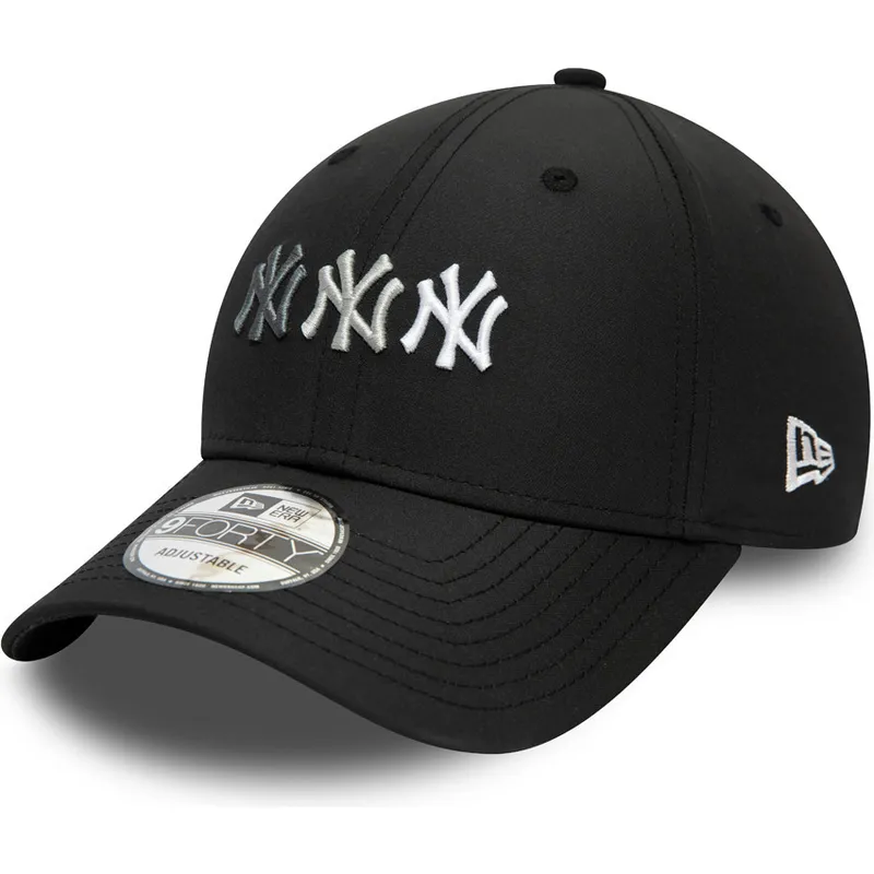 New Era New York Yankees MLB 9FORTY Stack Logo verstellbare schwarze Kappe mit gebogenem Schirm