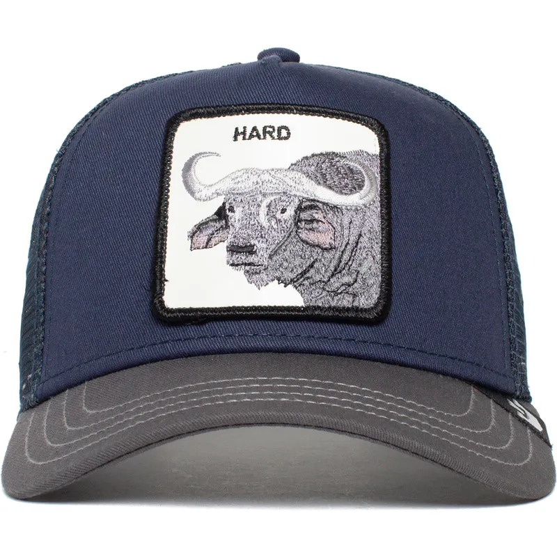 Marineblaue, graue und schwarze Trucker-Kappe Büffel Hard Widowmaker The Farm von Goorin Bros.